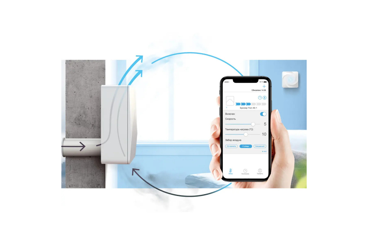 • Управляет устройствами: TION Бризер 4S, TION Бризер O2, очистители-обеззораживатели воздуха IQ200/400, очиститель-обеззараживатель TION Clever, ИК-модуль, терморегулятор Danfoss Eco