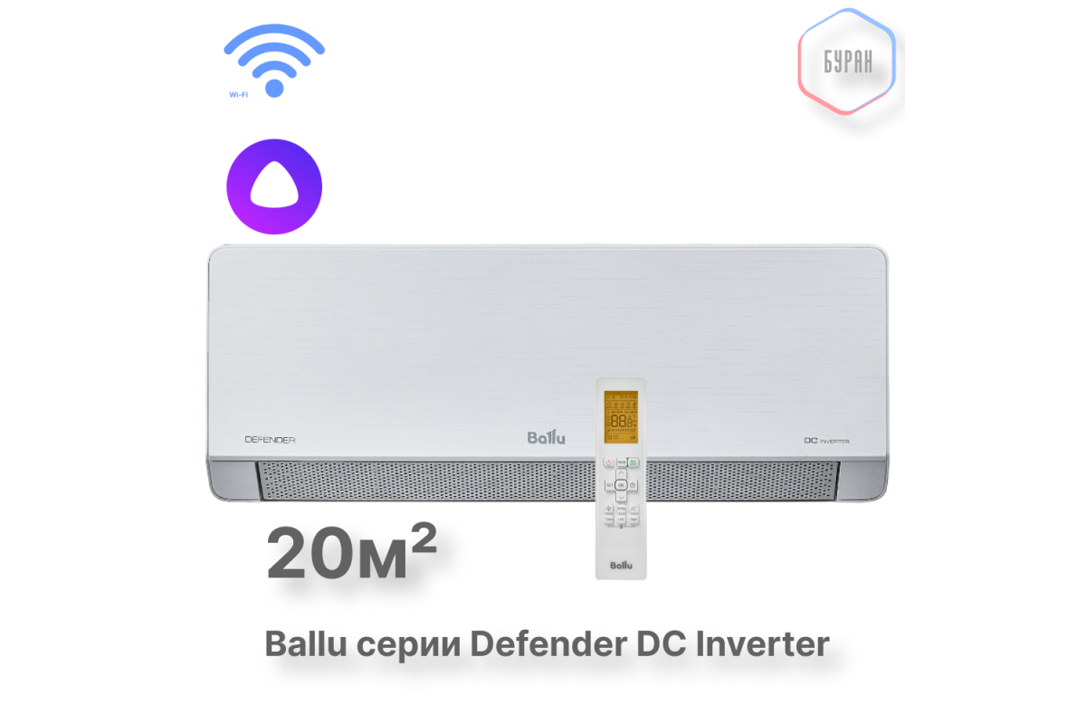 Внутренний блок Ballu Defender DC Inverter оптимально подходит для помещений площадью до 20 м². Это делает его отличным решением для спален, кабинетов или небольших офисов.