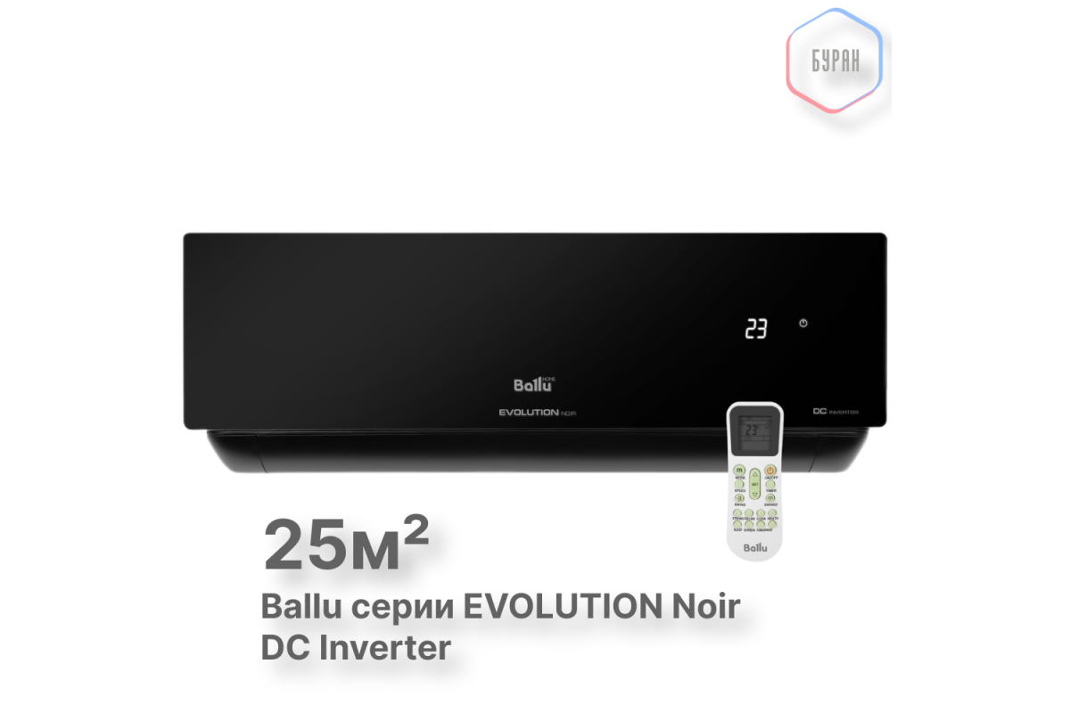 Ballu серии EVOLUTION Noir DC Inverter сочетает в себе элегантный дизайн и передовые технологии. Он обеспечивает комфортный микроклимат в вашем доме или офисе, работая эффективно и бесшумно. Благодаря инверторной технологии, кондиционер быстро достигает заданной температуры и поддерживает её с минимальными колебаниями, что способствует экономии энергии и повышает уровень комфорта.​