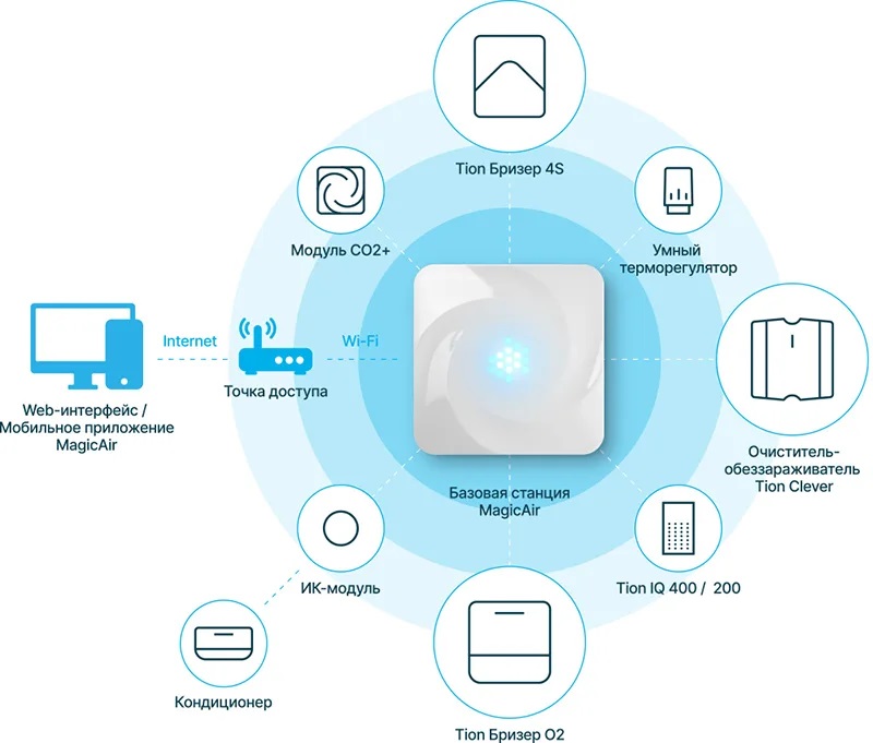 • Управление через мобильное приложение Tion Remote и MagicAir