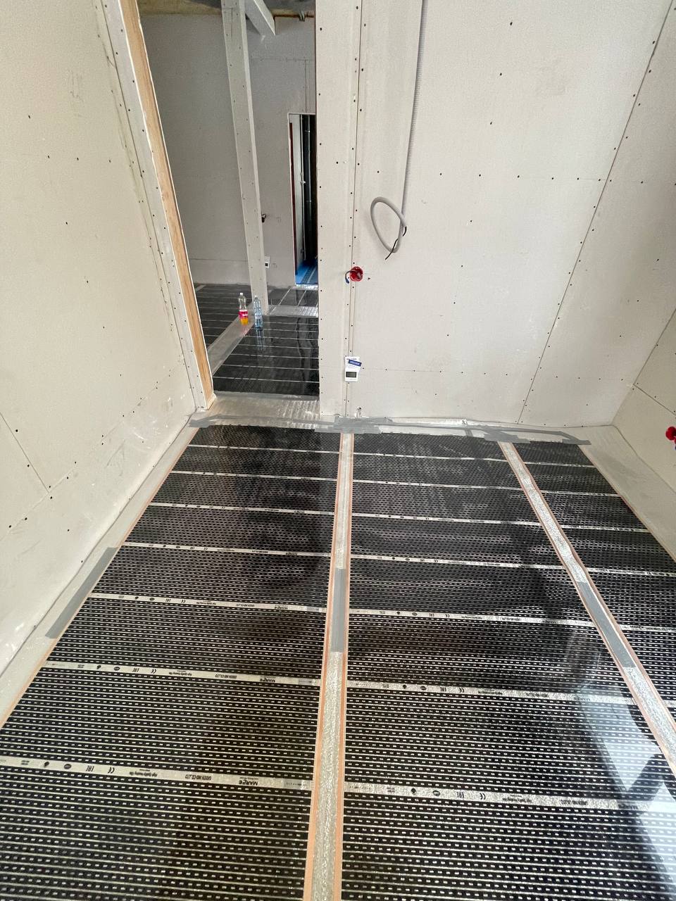 Наши специалисты определили зоны общего обогрева. Уложили теплоизоляционную подложку, а затем уже греющую пленку Корейского производства.