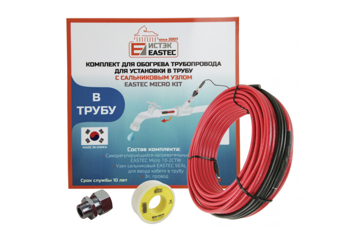 EMK-04 EASTEC комплект обогрева трубопровода для установки в трубу (4м-40 Вт) идеально подходит для использования в системах водоснабжения, включая:​