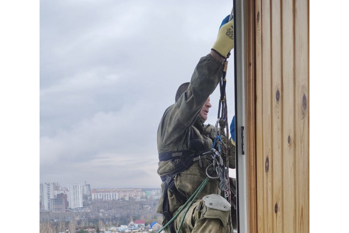 Монтаж кондиционера на 17 этаже с альпинистским снаряжением | Буран в Томске