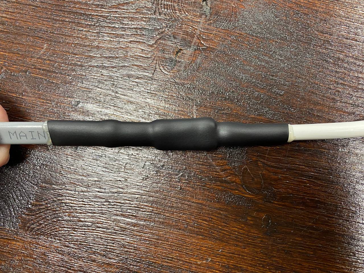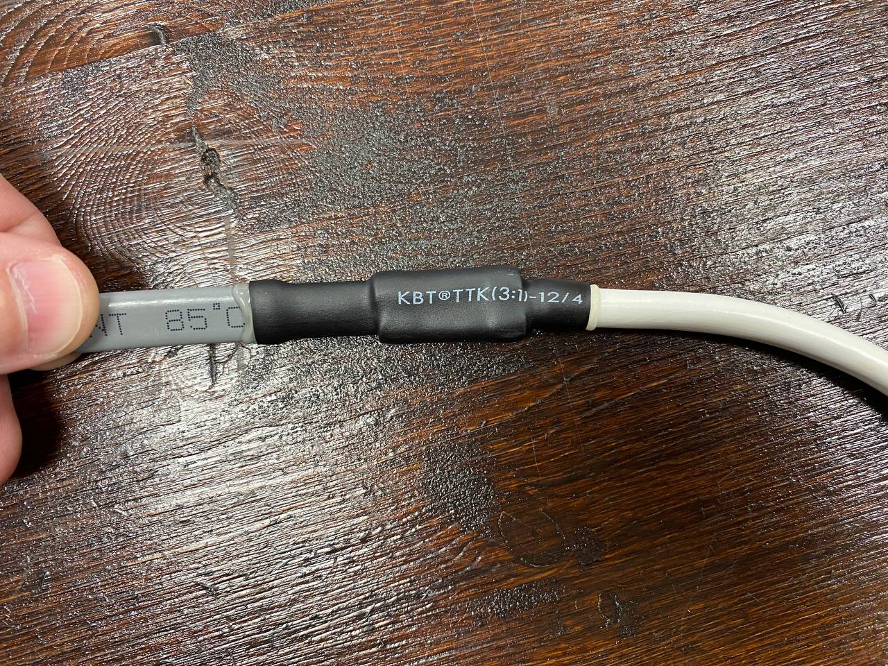 - После того как термоусадка обволокла кабель и приняла контур нашего соединения. Дадим ей 10 минут на остывание. Результат будет такой: