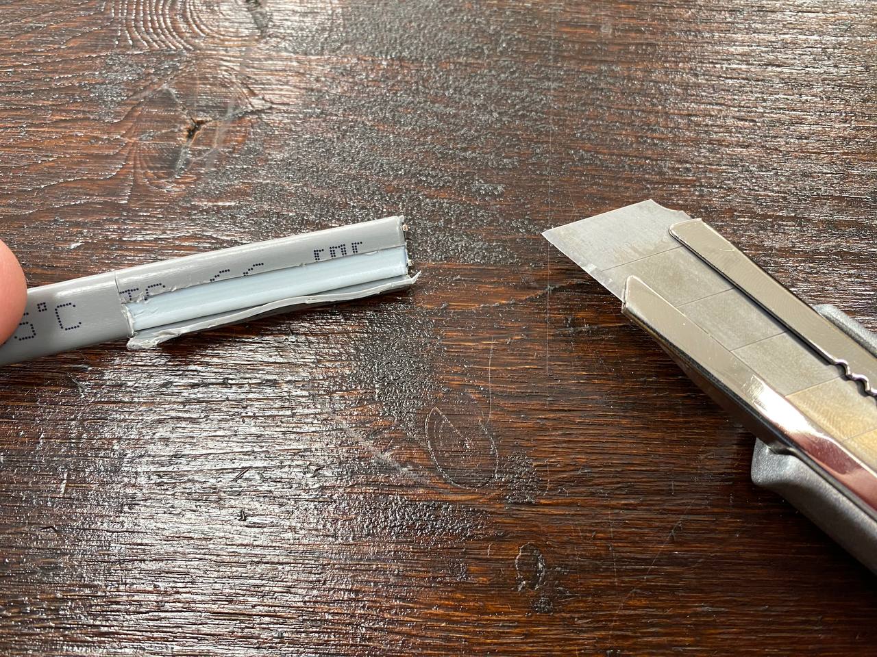 Приступим к зачистке греющих элементов. Нам понадобится обычный канцелярский нож, желательно острый.