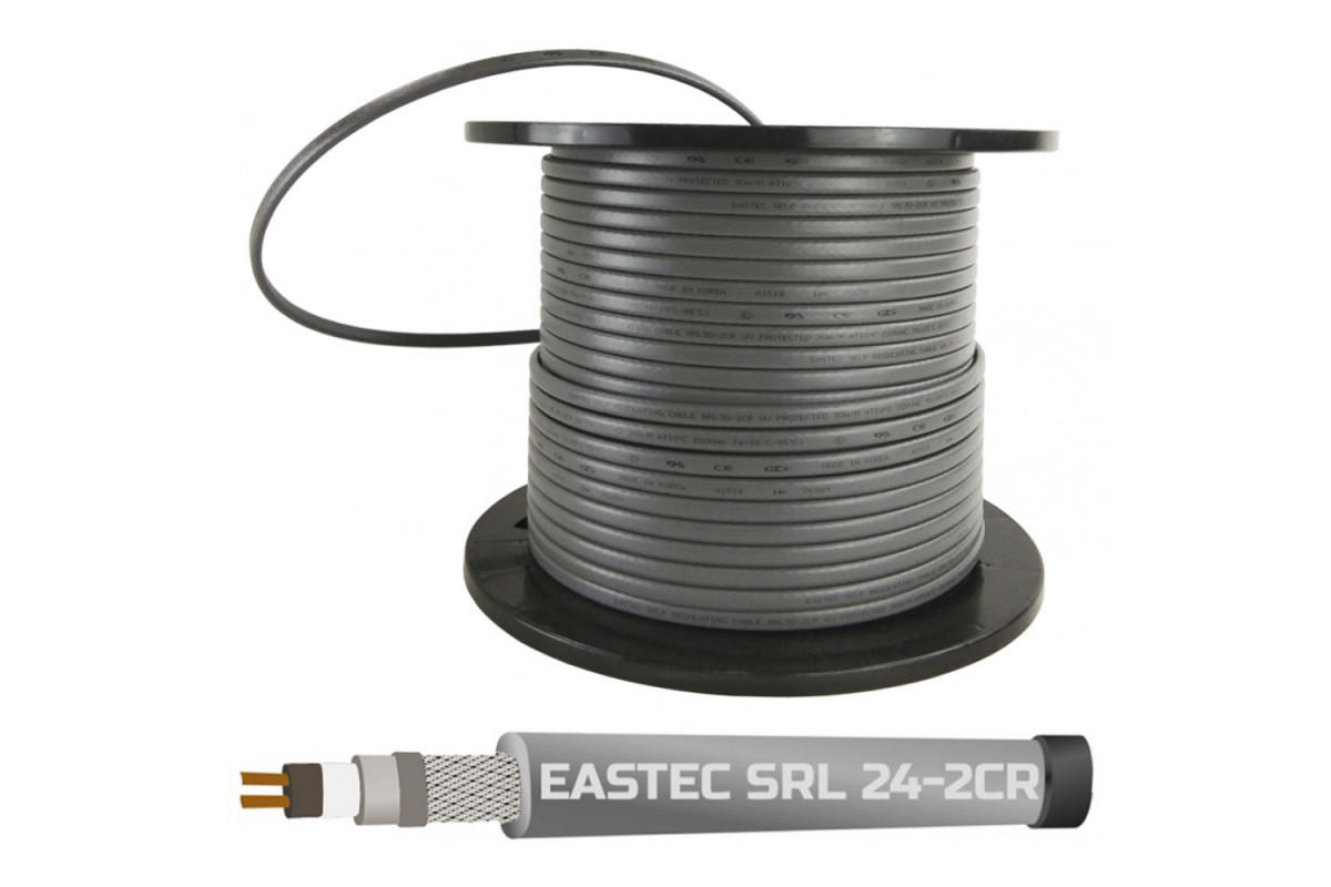 Экранированный самогреющийся кабель EASTEC SRL 24-2 CR мощностью 24 Вт применяется для защиты от перемерзания различных трубопроводов, водостоков, резервуаров и пр.