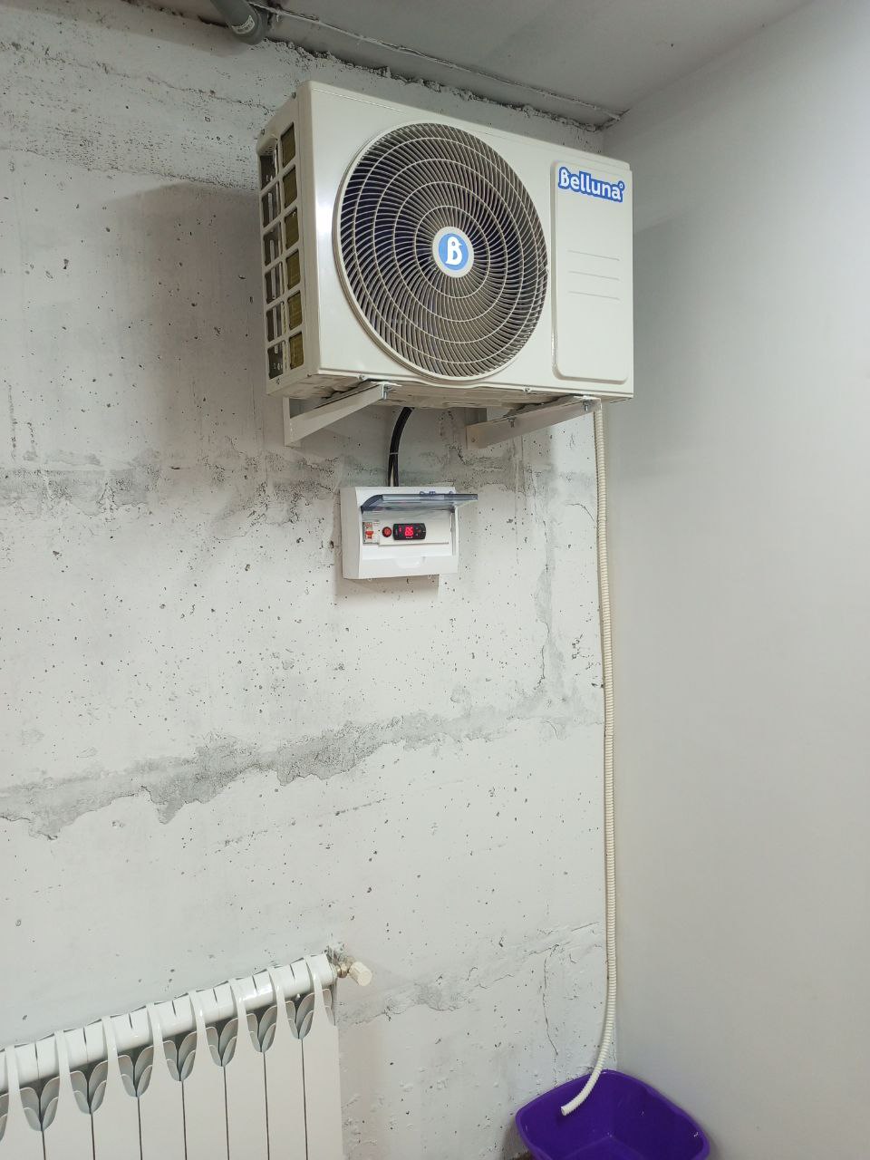 Рядом трубка дренажа конденсата, она обязательна как и в любом кондиционере. А вот под блоком установлена необычная коробка, это уже интересно.