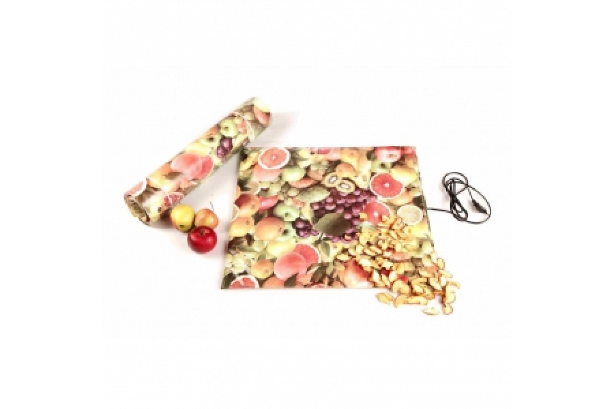 Устройство изготавливается в виде легкого и мягкого коврика с ярким оформлением. Нагревательный элемент сушилки помещается в специальный чехол, верхняя поверхность которого выполнена из столовой клеенки, а нижняя — из искусственной кожи. Генерируемые инфракрасные волны, подобно солнечным лучам, проникают внутрь продуктов, бережно высушивая их. В отличие от тепловой обработки такой способ заготовки урожая позволяет сберечь вкус, аромат и полезные качества плодов и растений. При этом ИК-волны абсолютно безопасны для здоровья человека.