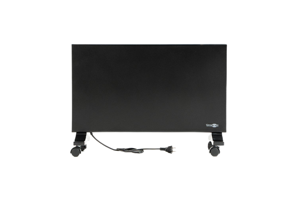 В комплект входят все необходимые элементы, включая отверстия для настенного крепления и ножки на колесах для мобильного использования. Поверхность обогревателя нагревается до рабочей температуры за 15 минут, и его можно использовать без постоянного контроля.