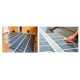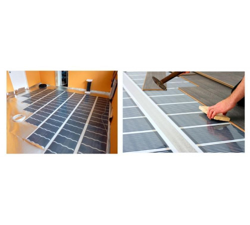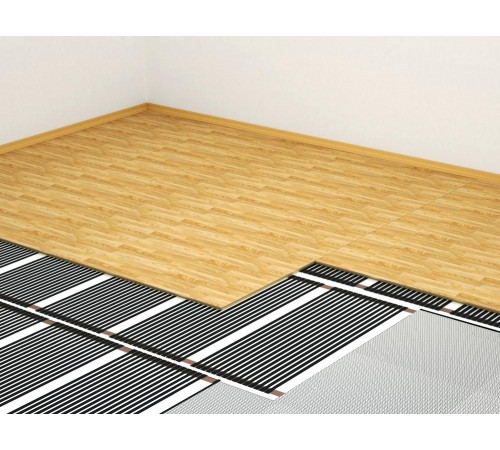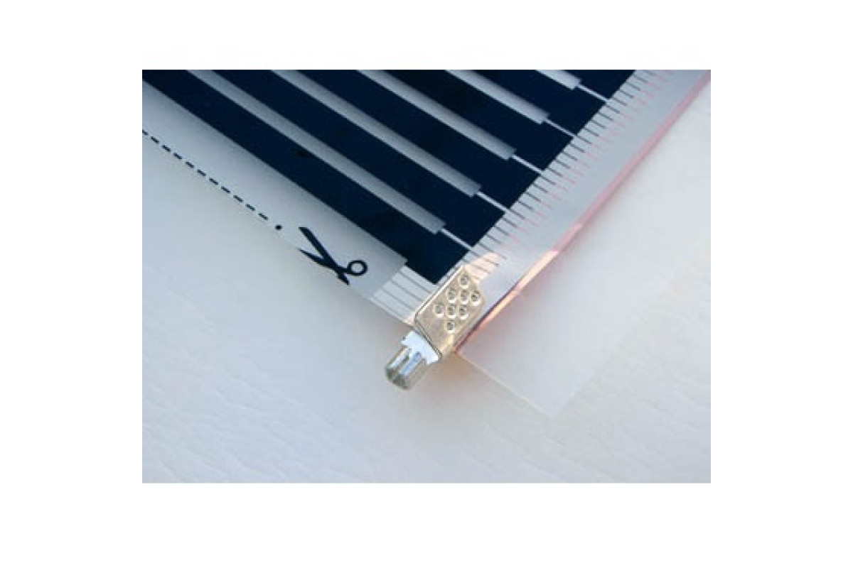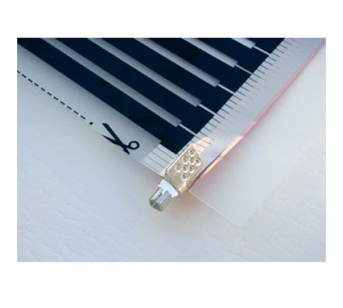 Полотно теплого пола представляет собой несколько рядов полос из углеродного материала 15 мм шириной. Полосы объединены между собой медными шинами с серебряным покрытием и служат для проведения электрического тока. Для защиты от влаги, механических воздействий и возгорания. Места прохождения нагревательного элемента заламинированы слоем плотного полимера, который не задерживает инфракрасные лучи.