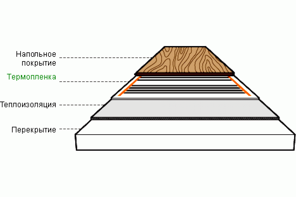 При подключении к сети 220В пленка начинает излучать инфракрасные волны, которые, соприкасаясь с ближайшей поверхностью, нагревают её.