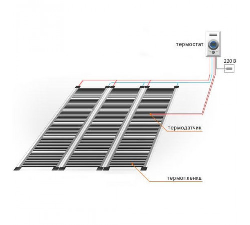 Термическая пленка, представляет собой совокупность греющих карбоновых полос, соединенных между собой. Слой ламинации из высокопрочного полимера защищает от проникновения влаги, вншних повреждений, а также возможного возгорания, но в то же время пропускает инфракрасное излучение.