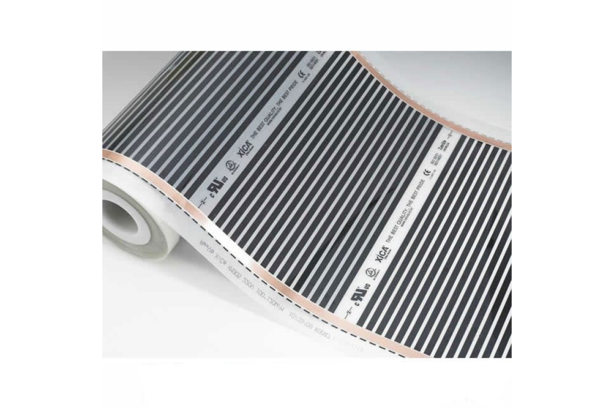 Полотно теплого пола представляет собой несколько рядов полос из углеродного материала 15 мм шириной. Полосы объединены между собой медными шинами с серебряным покрытием и служат для проведения электрического тока. Для защиты от влаги, механических воздействий и возгорания. Места прохождения нагревательного элемента заламинированы слоем плотного полимера, который не задерживает инфракрасные лучи.