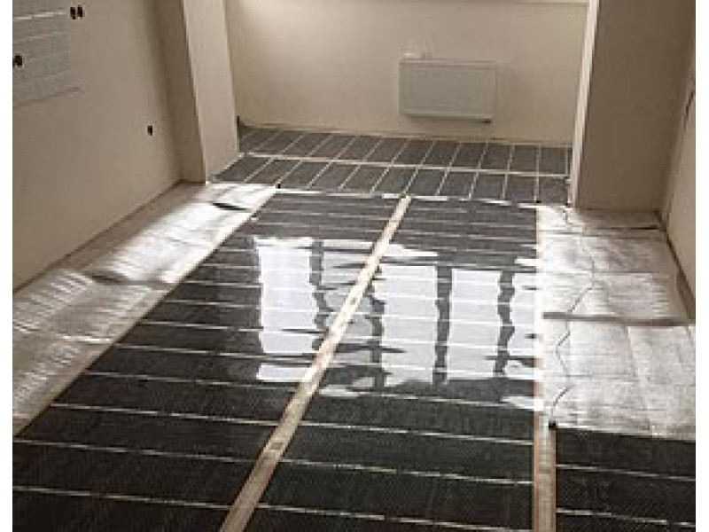 В комнате, совмещенной с лоджий, уложен теплый пленочный пол.