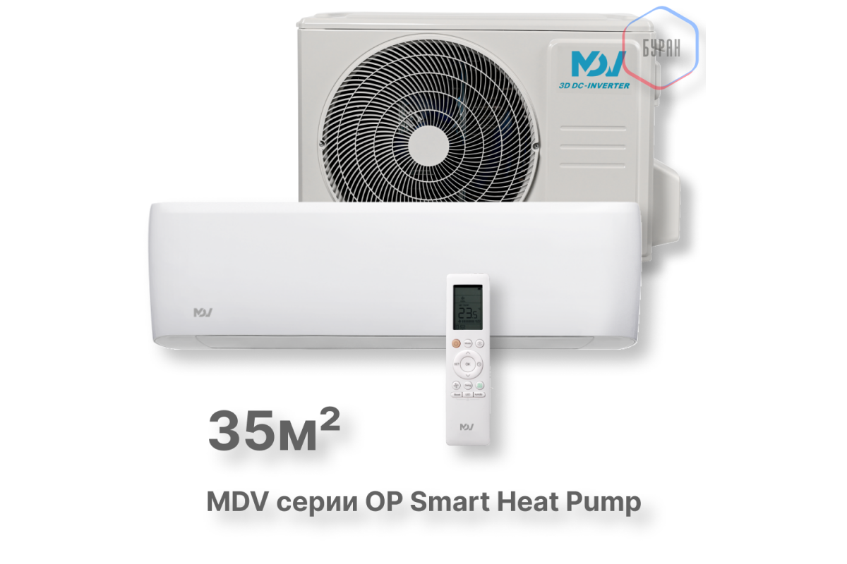 Инверторная сплит-система MDV OP Smart Heat Pump сочетает в себе высокую энергоэффективность, современный дизайн и широкий функционал. Благодаря технологии 3D DC-Inverter, кондиционер обеспечивает точное поддержание заданной температуры и экономию электроэнергии. Компрессор GMCC гарантирует надежную и тихую работу устройства.​