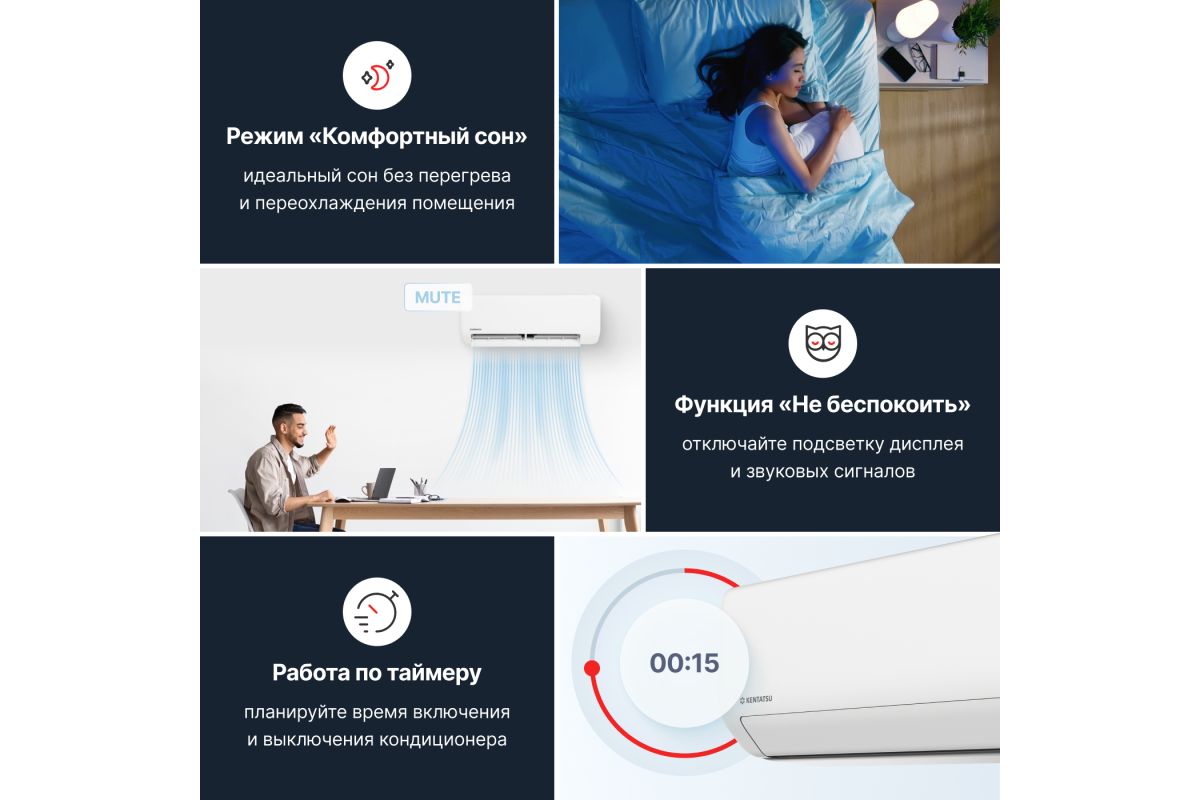 Кондиционер Kentatsu Sempai Inverter – это сочетание японского качества и инновационных технологий. Благодаря инверторному управлению, система экономит до 30% электроэнергии, обеспечивая при этом бесшумную и плавную работу. Выбирайте комфорт без переплат!