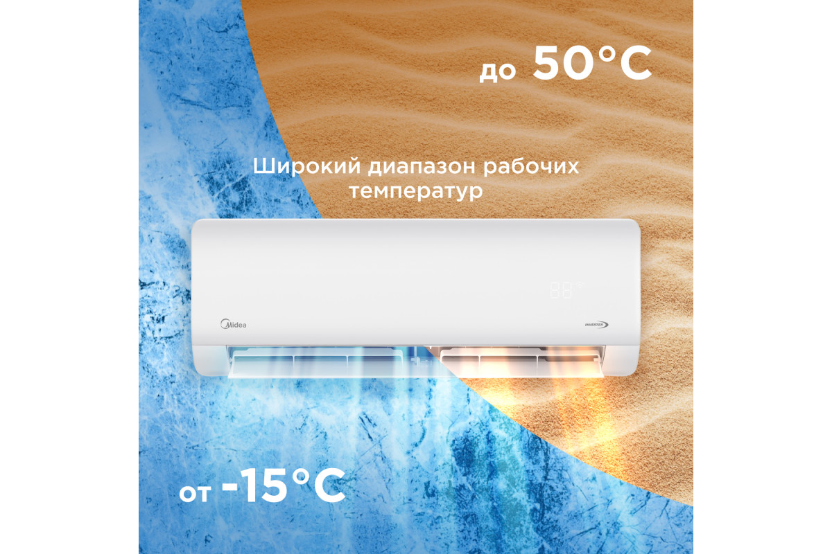 • Широкий диапазон рабочих температур: от -15°C до +50°C, что позволяет использовать кондиционер в различных климатических условиях. ​