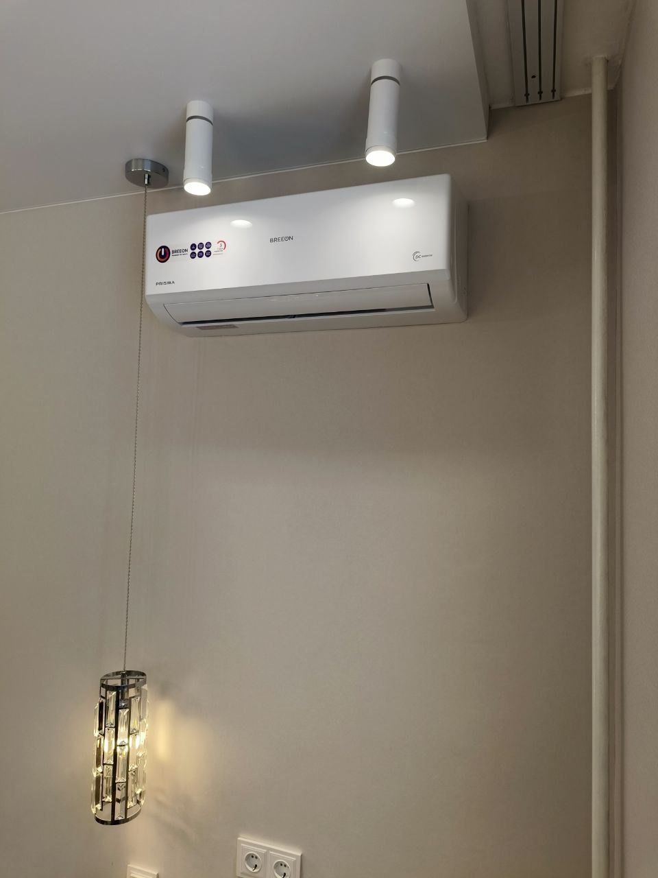 После завершения черновых работ настало время установки внутренних блоков двух сплит-систем BREEON. Эти системы не только обеспечивают комфортный климат, но и идеально вписываются в общий дизайн интерьера. Мы уделили особое внимание эстетике: медные трубки аккуратно спрятаны, чтобы сохранить безупречный вид стен. Ведь важна не только функциональность, но и визуальная гармония.