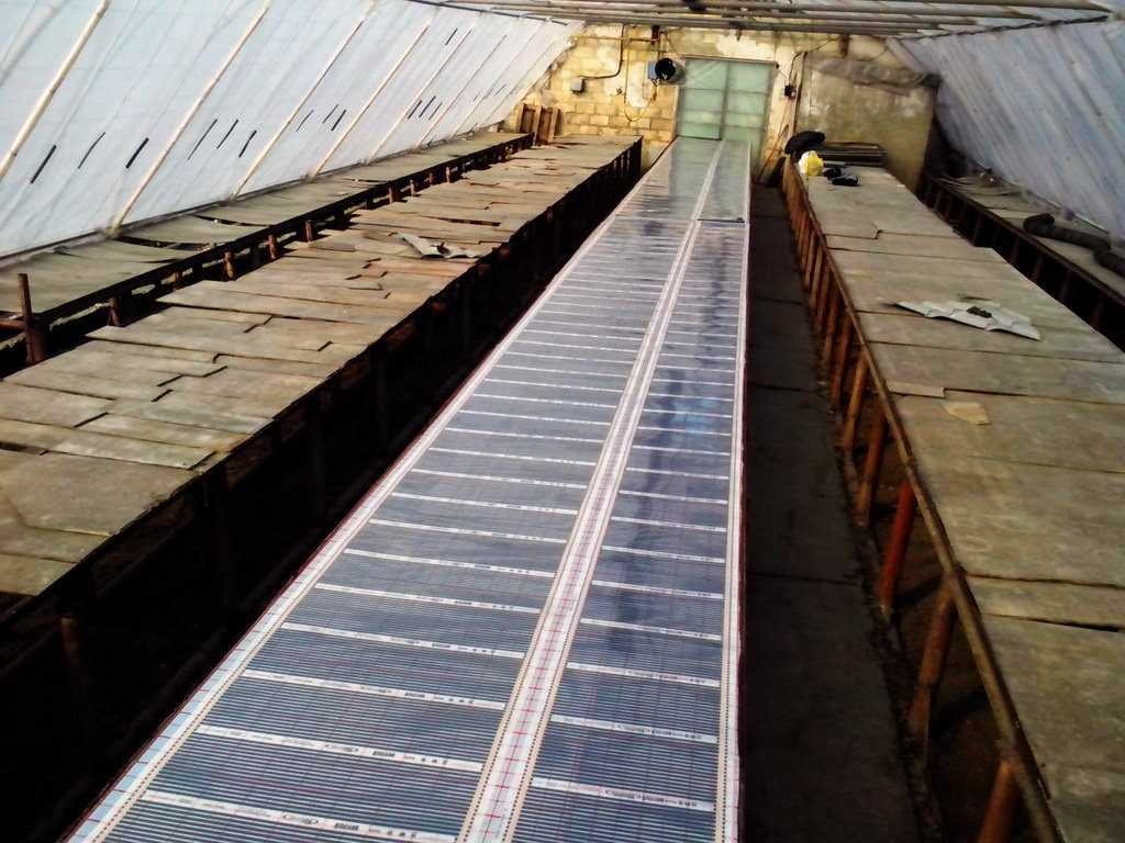 Самый элементарный (чаще применяется как вспомогательный в сильные морозы) вариант — накрывать столы с растениями или ставить горшки на греющую пленку (например, пока прорастут семена или окрепнет рассада). Можно также разложить полотна необходимой длины между рядами растений или по периметру теплицы.