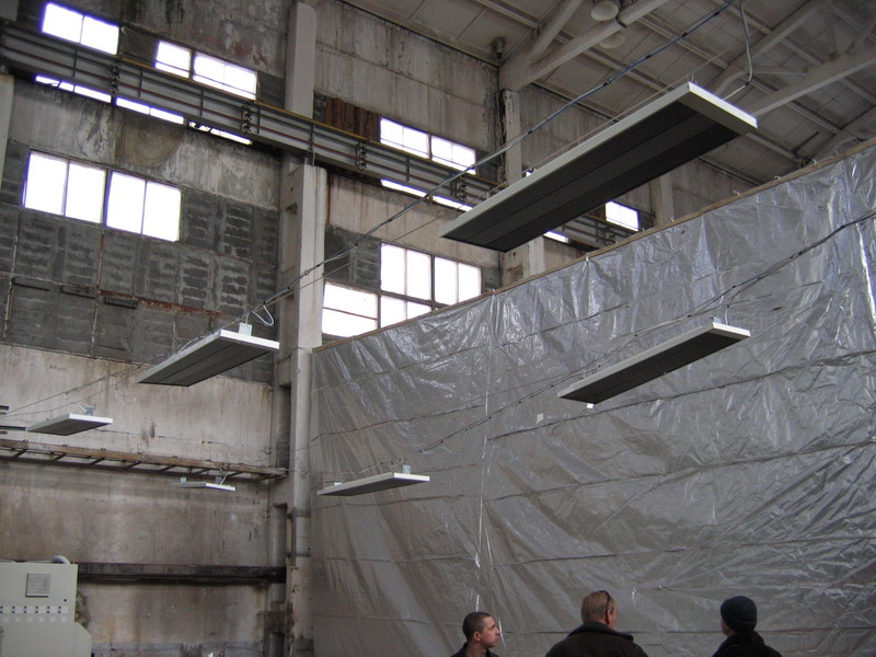 Промышленные инфракрасные обогреватели имеют подвесное крепление под потолком. Поэтому подходят для помещений с высотой потолка от 3 до 20 м. Используются для отопления производственных помещений различного назначения: цехов, ангаров, складов, гаражей, птицефабрик, звероферм, вольеров для животных в зоопарке, теплиц, больших залов различного назначения, спортивных сооружений. Еще одна область применения промышленных инфракрасных обогревателей – обогрев открытых площадок с целью предотвратить обледенение поверхностей, а также сушка. Инфракрасные обогреватели данного вида достаточно мощные, чтобы служить основным источником отопления.