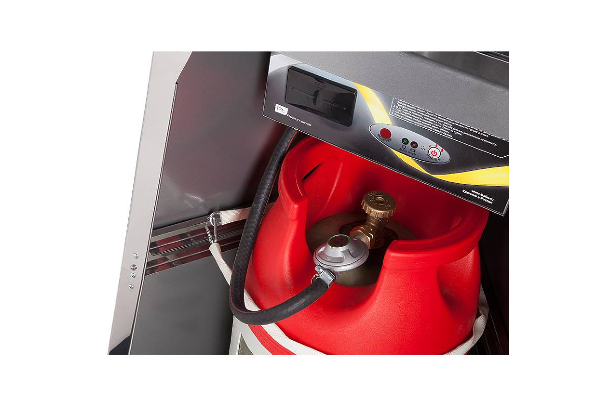 • Внутреннее пространство способно вместить и закрепить газовый баллон емкостью до 27 л. Максимальные габариты газового баллона для скрытой установки: диаметр 300 мм, высота 590 мм;