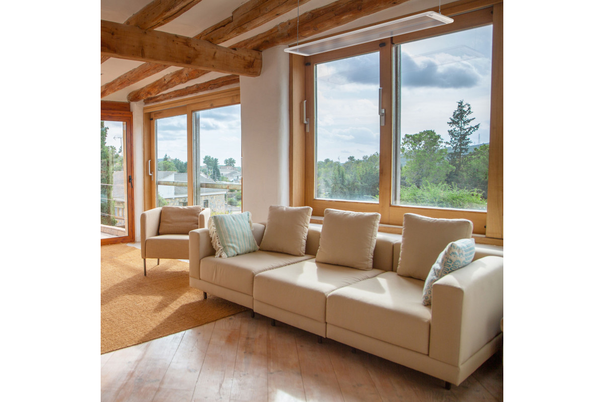 Повышенная степень пылевлагозащиты IP54 допускает применение обогревателей даже во влажных помещениях (ванные комнаты, бани, бассейны). Подвес на тонких незаметных тросах в комплекте.