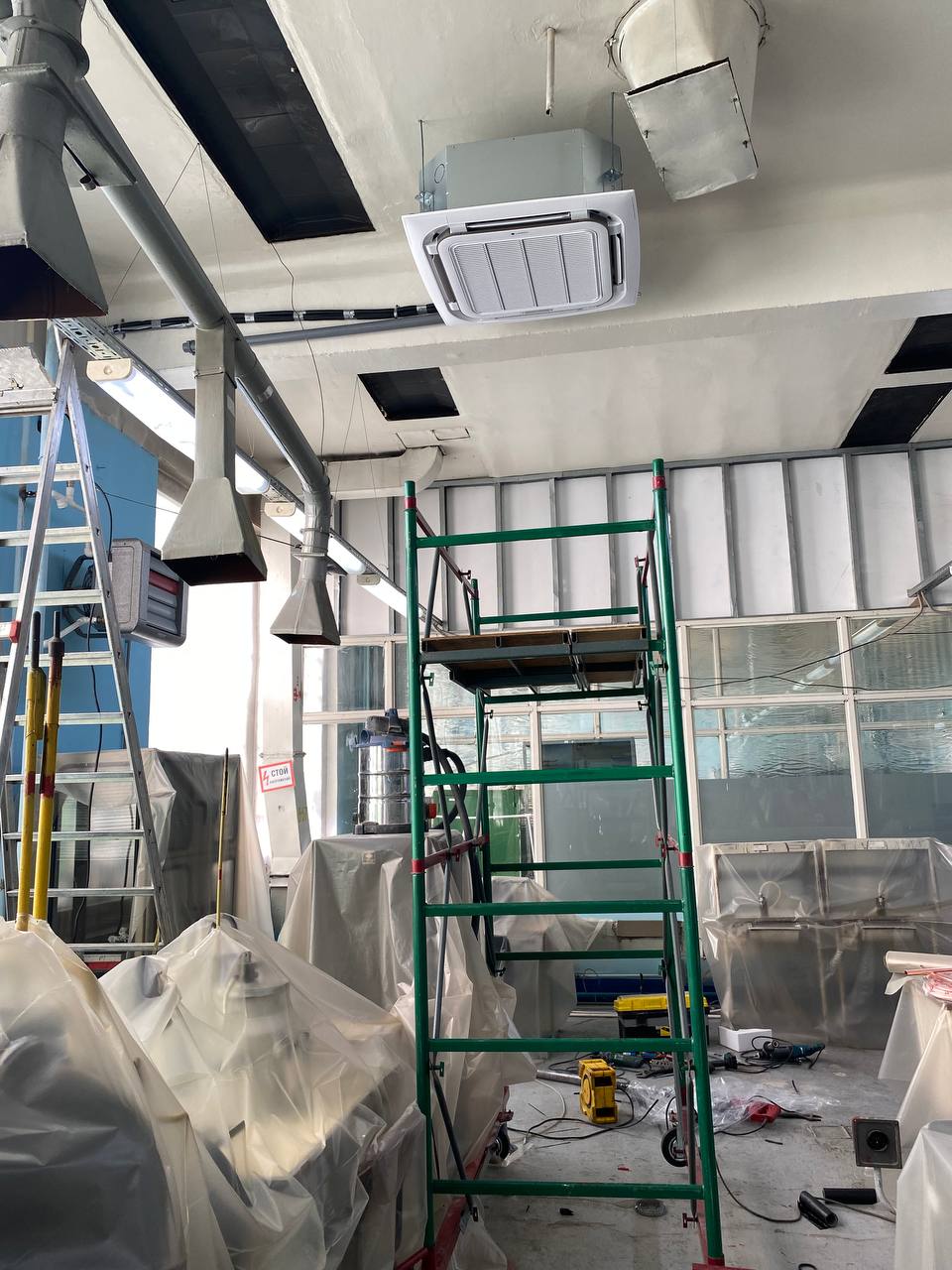 Для обеспечения надежного охлаждения производственного оборудования были выбраны кассетные кондиционеры. Этот тип кондиционеров отличается высокой эффективностью и равномерным распределением воздуха. Они идеально подходят для промышленных помещений с высокой тепловой нагрузкой.