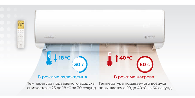 • Стабильная работа на обогрев до -20 °С — актуально для районов с суровым климатом. На охлаждение сплит-система способна работать при температуре уличного воздуха до -15 °С.