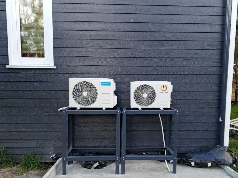 Все внешние блоки были установлены не на стены, а на специальные металлические стеллы-подставки. Это решение позволяет: