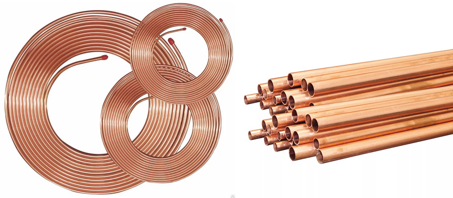 Существуют различные типы медных труб, которые выпускаются на сегодняшний день. Они могут быть поставлены в бухтах или отрезках, отожженные или не отожженные, малого или большого диаметра, тонкостенные или толстостенные, бесшовные или шовные.