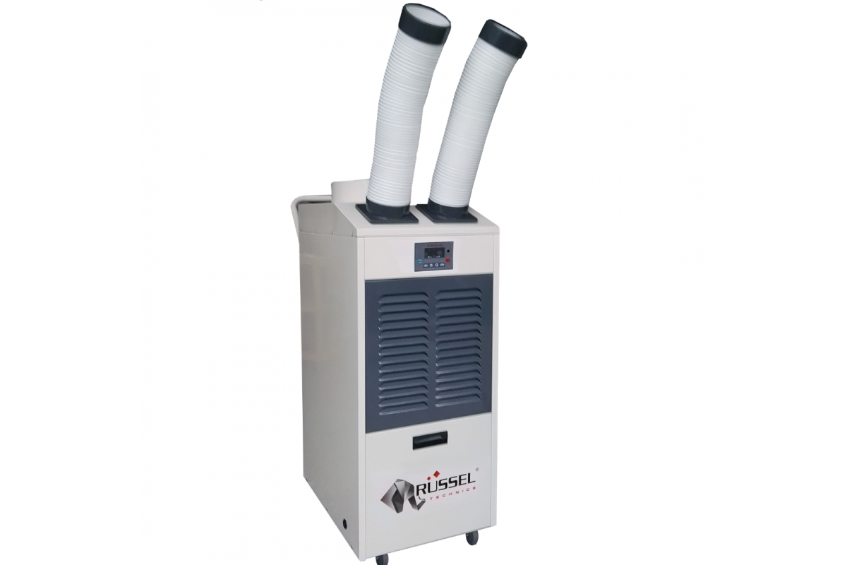 Мобильный промышленный кондиционер RŬSSEL Technics RPAC-16H представляет собой единый корпус, установленный на колеса для передвижения. Основными частями кондиционера являются: испаритель (расположен на передней панели, закрытый фильтром и защитной решеткой), конденсатор (расположен сзади кондиционера и закрыт решеткой), компрессор, вентиляторы конденсатора и испарителя, панель управления (расположена на передней панели кондиционера), ручка для передвижения, воздухораздающий патрубок, защитная решетка вентилятора конденсатора, сетевой шнур. Оборудование полностью заправлено хладагентом и готово к работе. Детальное описание кондиционера, инструкция по эксплуатации, обслуживанию и ремонту представлены в разделе Тех. Информация.