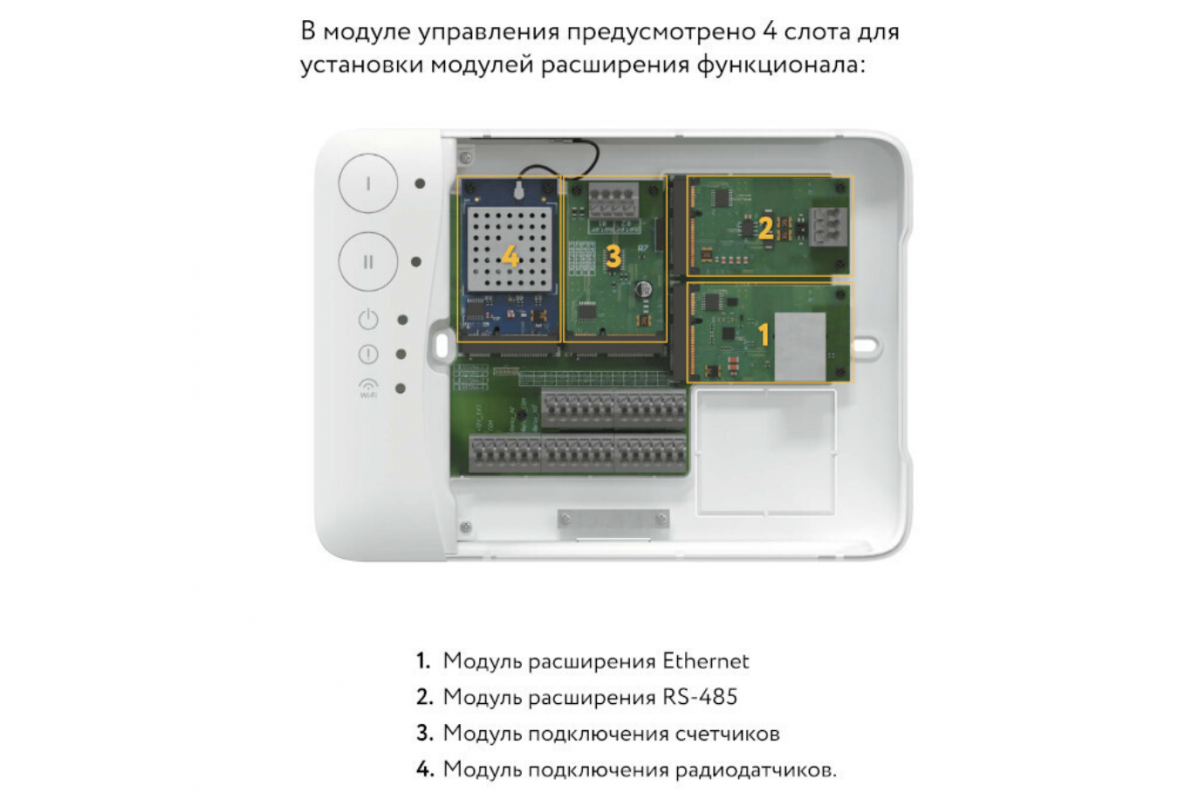 Модуль расширения RS-485 служит для интеграции в автоматизированные системы управления с поддержкой протокола MODBUS RTU.