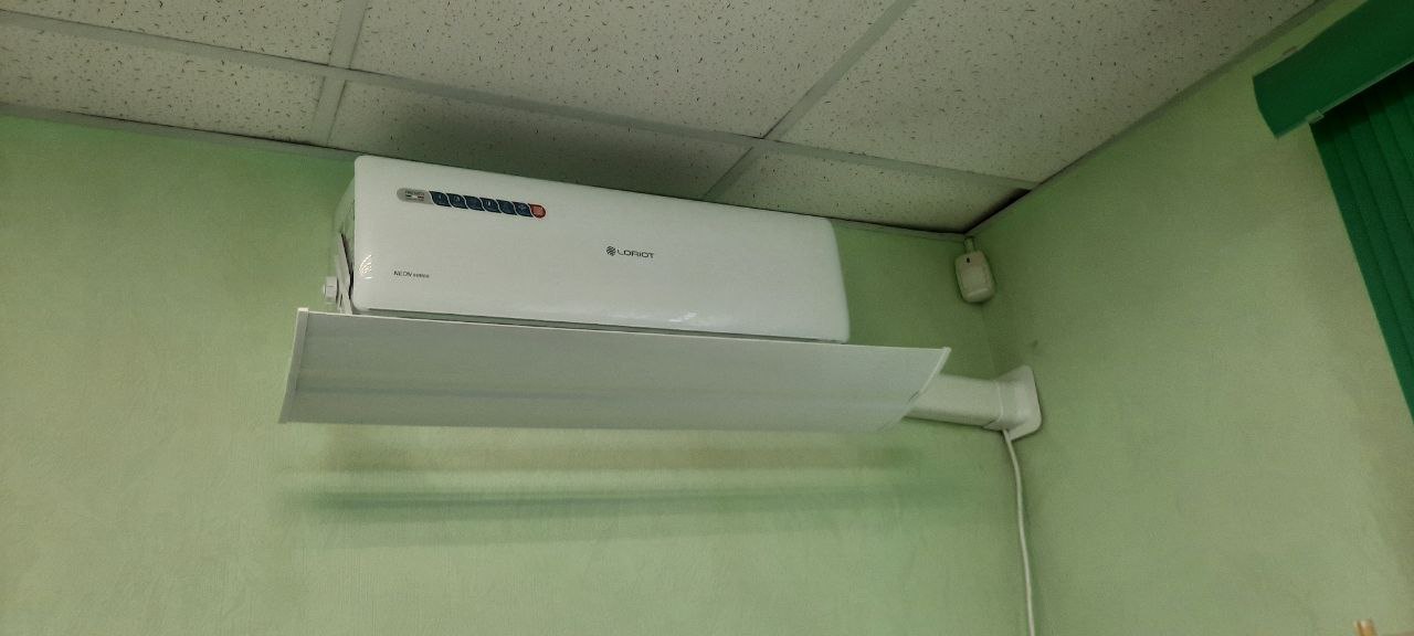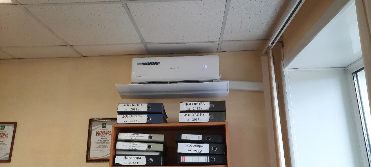 В прошлом году государство приобрело у компании "Буран" оборудование, но не успели в сезон поставить. В этом году мы нагнали погоду с опережением и выполнили работы по установке двух кондиционеров марки Loriot в кабинете управления и приемной.