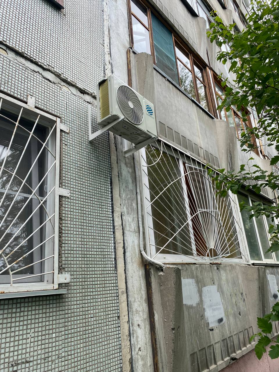 Кронштейны для внешнего блока были закреплены на стене здания с использованием анкерных болтов, чтобы обеспечить надежное крепление даже при сильных ветрах.