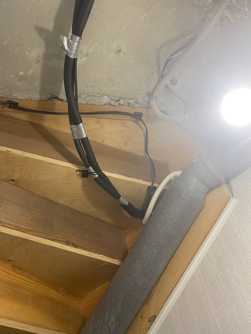 • Прокладку трубопроводов и электропроводки от внешнего блока на втором этаже.