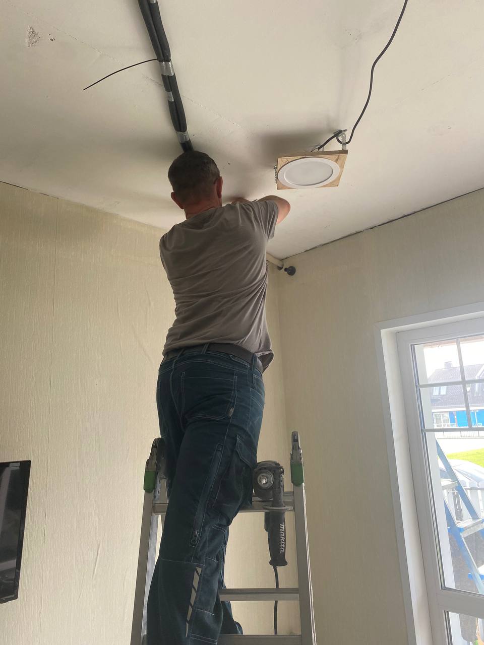 Установили кондиционер Кентатсу Тибо 35 Михаилу в Толмачево. Монтаж нестандартный: трассу тянули со 2 этажа через пол в ванную и по потолку гостиной комнаты.