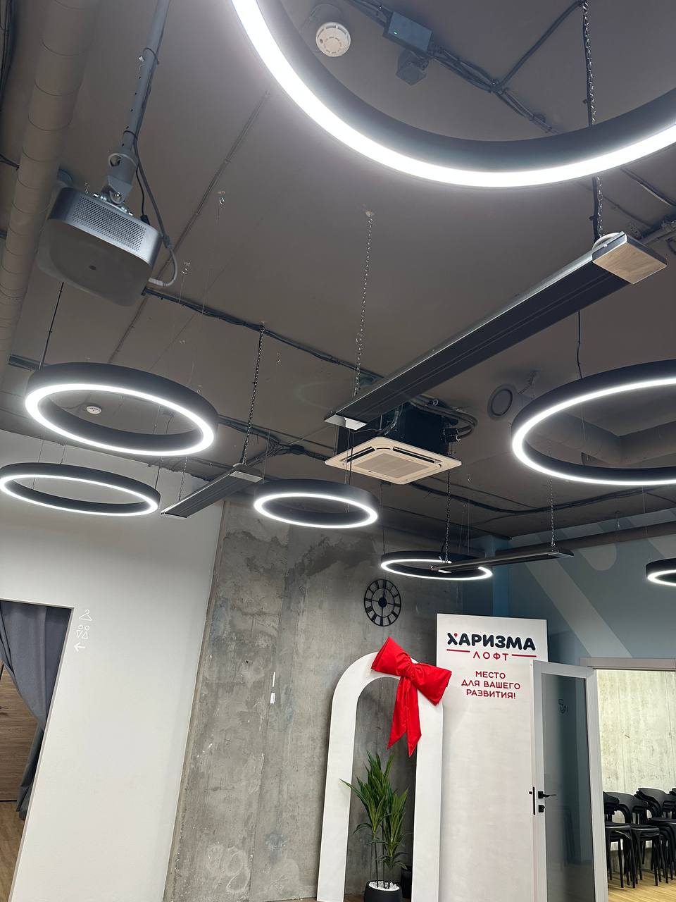 Благодаря продуманному решению и качественному монтажу потолочных обогревателей ТМ "Калашников", зал для конференций в лофт-студии "Харизма" стал по-настоящему уютным и комфортным пространством. Теперь участники мероприятий могут сосредоточиться на работе и общении, не отвлекаясь на холод.