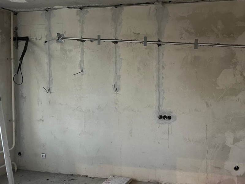 Работы начались с проектирования трассы под кондиционер — это один из самых ответственных этапов, особенно на стадии чернового ремонта. Наш специалист Антон, имеющий многолетний опыт монтажа климатических систем, разработал детальный чертёж трассировки, учитывающий будущую мебель, расположение электрических точек и инженерных коммуникаций.