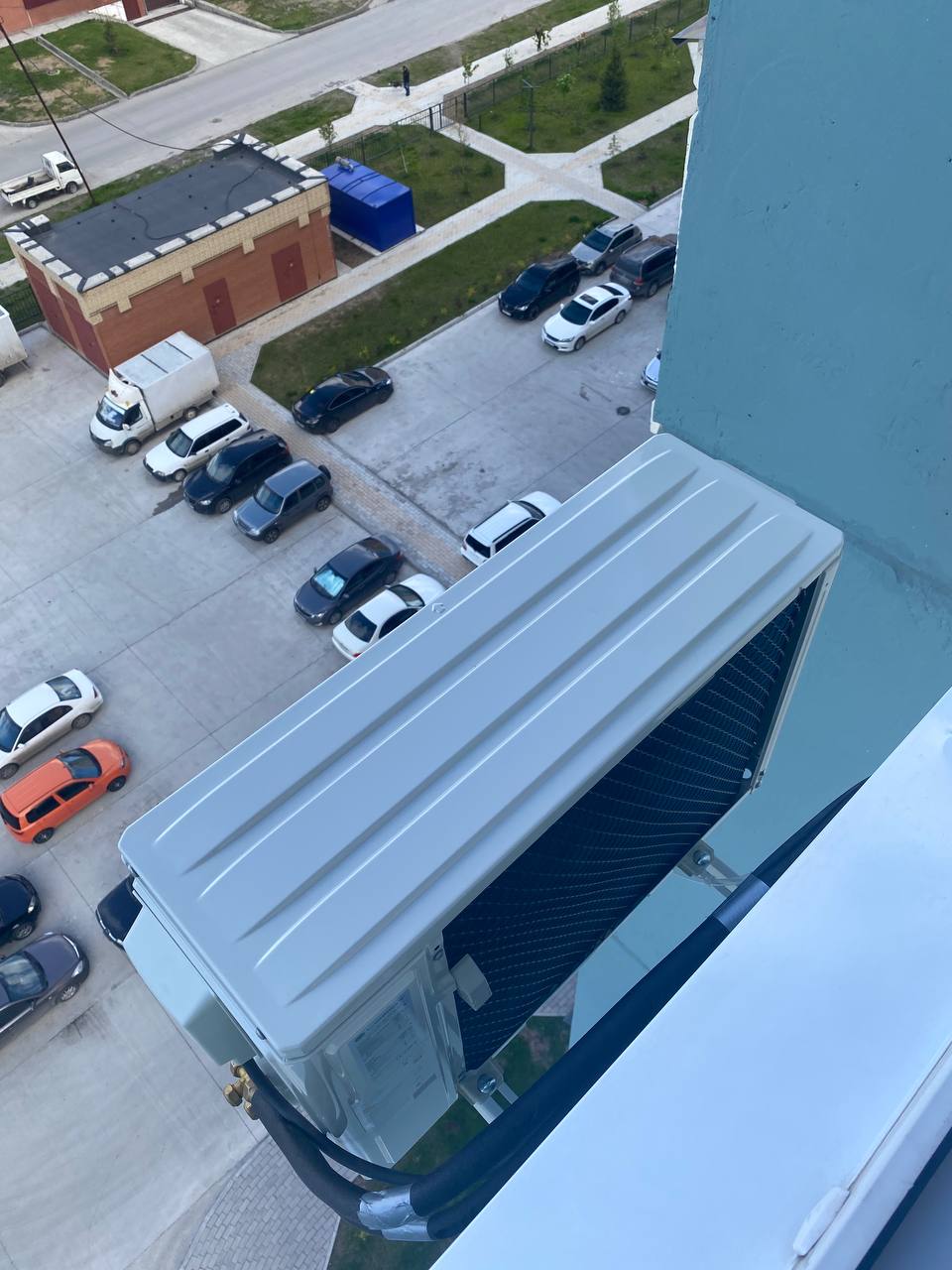 Третья сплит-система была установлена через лоджию с выводом окна на лоджии. Это решение позволило эффективно использовать пространство лоджии для размещения коммуникаций.