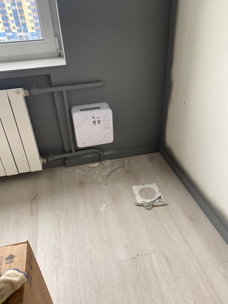 Для создания здорового микроклимата в квартире Ларисы наши монтажники установили систему приточной вентиляции Tion Lite. Это современное оборудование, обеспечивающее приток свежего воздуха без необходимости открывать окна, что особенно важно в городских условиях.
