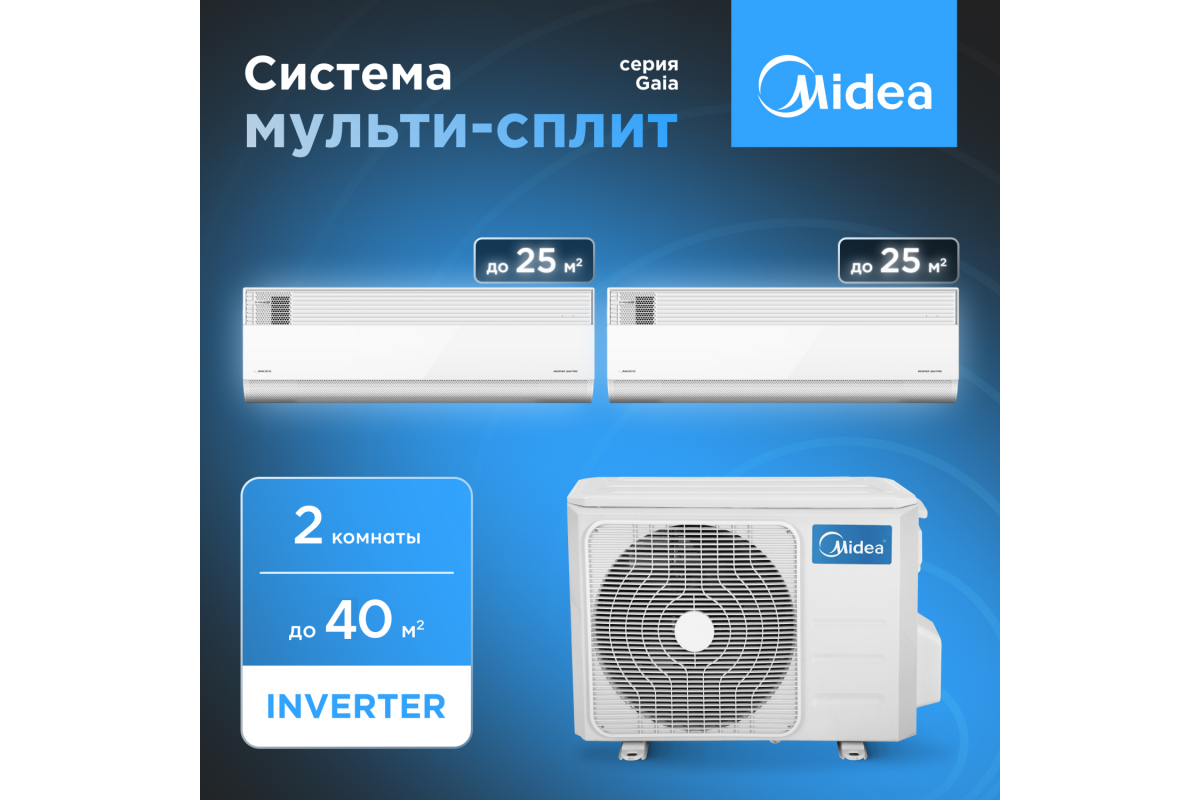 ❄️ Мульти сплит-система Midea Gaia Inverter M2OH-14HFN8-Q1/MMCA1BU-09HRFN8×2 — комфорт в каждой комнате!