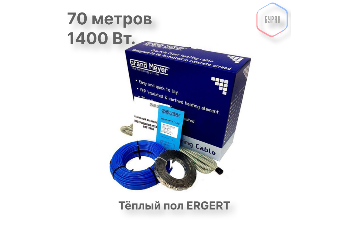 Нагревательный кабель Grand Meyer THC20-70 (70 м) – это современное решение для обустройства системы электрического теплого пола под плитку, керамогранит и другие напольные покрытия. Он обеспечивает равномерный прогрев поверхности, создавая комфорт в ванной, кухне, коридоре или на балконе.