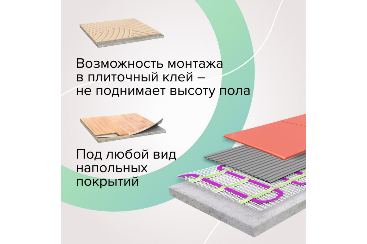 Благодаря равномерному распределению нагревательного кабеля на стекловолоконной сетке, мат обеспечивает стабильный и комфортный обогрев всей поверхности пола без перегревов и холодных зон.