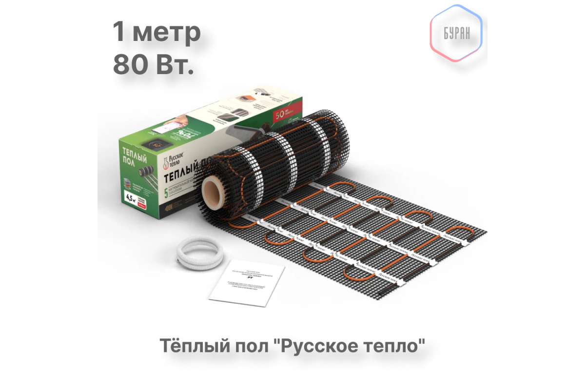 Нагревательный мат для теплого пола Русское тепло 0.5 м² 80 Вт — это современное решение для создания комфортного и эффективного обогрева пола в вашем доме. Компактный и мощный, он идеально подходит для установки под плитку, обеспечивая равномерное распределение тепла и экономию энергии.​