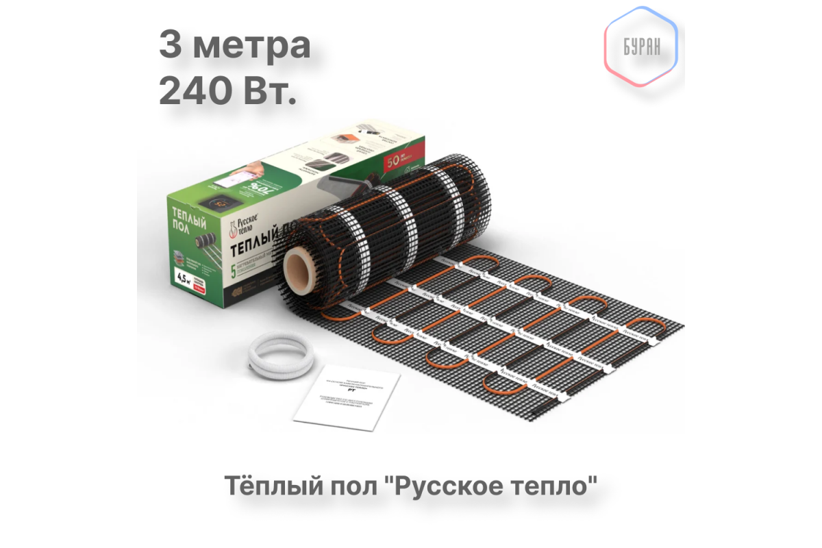 Нагревательный мат для теплого пола Русское тепло 1.5 м² 240 Вт