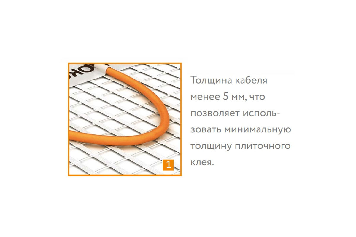 Тонкий нагревательный мат: толщина не более 4 мм.