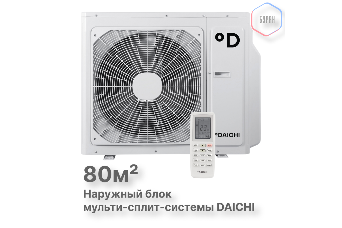 Наружный блок Daichi DF80A3MS1R рассчитан на обслуживание помещений площадью до 80 м². Это идеальный выбор для квартир, офисов или небольших коммерческих помещений.​