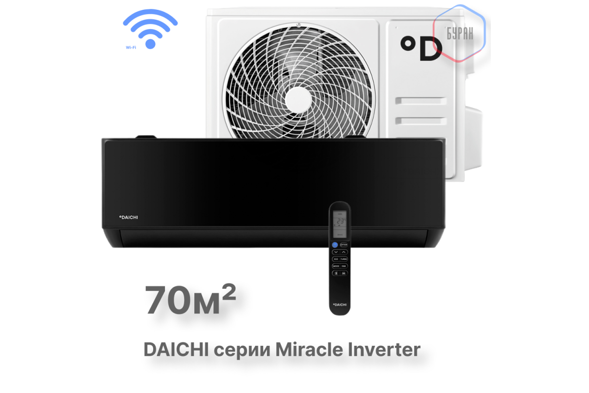 Настенная сплит-система Daichi MIRacle Inverter MIR70AVQS1R/MIR70FVS1R – это сочетание передовых технологий, высокой энергоэффективности и стильного дизайна. Она обеспечит комфортный климат в вашем доме или офисе, радуя надежностью и простотой управления.​