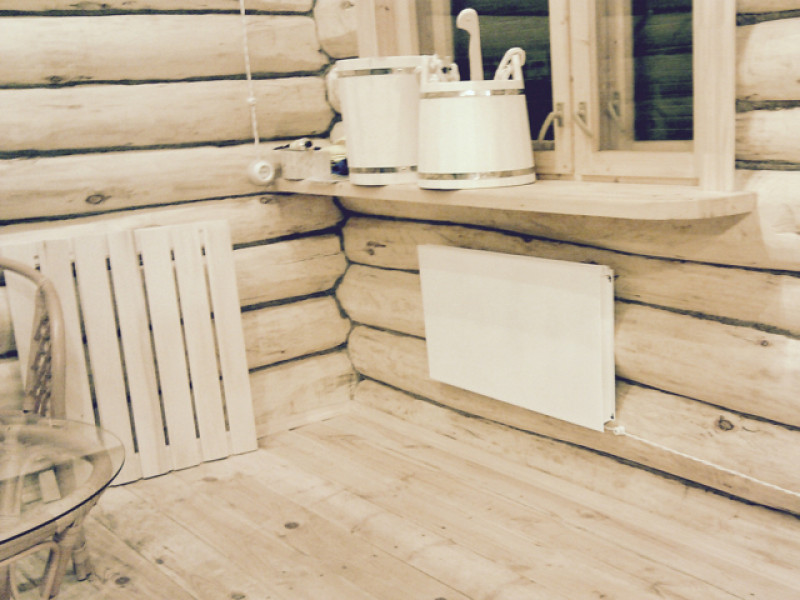 Обращения в нашу компанию с потребностью организовать систему отопления в банях и саунах встречаются довольно часто. Данный случай не стал исключением. Типовая конструкция русской бани из бревенчатого сруба требовала системы отопления в комнате отдыха (предбанника). В помещении имелась 1 дверь, выходившая на улицу без тамбура и 2 окна с двухкамерным стеклопакетом. Помимо задачи в отоплении комнаты во время приятия банных процедур была необходимость поддерживать в помещении плюсовую температуру во время отсутствия людей, для защиты от замерзания системы трубопровода. Благодаря хорошей утепленности помещения и благоприятным климатическим условиям Краснодарского края было заложено 2 настенных ИК обогревателя, мощностью 700 Вт каждый, что на 30% меньше общепринятых нормативов. Также был установлен комнатный механический терморегулятор, для возможности устанавливать режим антиобледенения и поддерживать температуру в помещении на заданном уровне. В итоге была получена очень эффективная схема отопления с минимальными издержками на первоначальные и эксплуатационные издержки.