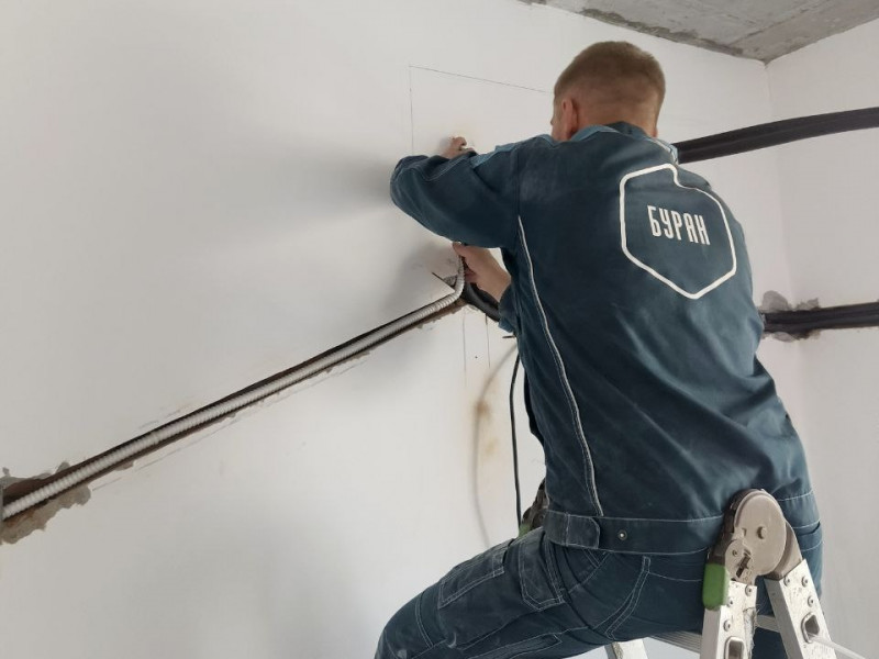 Перед тем как заштукатурить штробы, монтажники провели опрессовку трассы — проверку герметичности под давлением азота. Это обязательная процедура, подтверждающая качество монтажа. Все соединения были проверены, трасса закрыта и готова к финишной отделке.